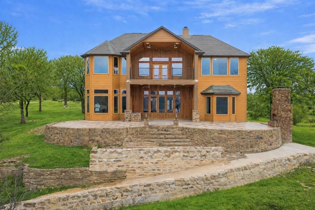 Stunning lakefront retreat nestled on 1.56 acres in a private gated community on the shores of Lake Bridgeport. This exceptional home offers breathtaking panoramic lake views and an impressive 5,000 SQFT open floor plan with 4 spacious bedrooms and 4 full bathrooms designed for both luxury living and entertaining. Step inside to soaring ceilings, luxury vinyl plank flooring, and high-end upgrades throughout. The thoughtfully designed layout includes a private office, formal dining room, expansive game room, and dedicated media room. The chef’s kitchen is truly the heart of the home, featuring a large quartz island with breakfast bar, beautiful two-tone cabinetry, glass-lit display cabinets, under-cabinet lighting, a large pantry, butler’s pantry, and a bright breakfast nook. The spacious living room showcases a cozy fireplace with built-in cabinetry and large windows framing the incredible lake views. Upstairs, the game room opens to a private balcony overlooking the lake, creating the perfect space to relax and enjoy the scenery. Guest bedrooms are generously sized and feature walk-in closets and stunning lake views, while a Jack-and-Jill bathroom with shower-tub combo serves two of the bedrooms. An additional upstairs ensuite bedroom includes its own bathroom, walk-in closet, mud bench, and balcony access. The media room is fully equipped with surround sound, screen, and projector, perfect for movie nights. Step outside to your private outdoor oasis, complete with a covered patio, outdoor kitchen, and beautiful stone fireplace, all overlooking the tranquil lake and wooded backdrop. A beautiful stone wall marks the beginning of a 10-foot wide concrete path that leads directly down to the water, making lake access easy and scenic.This rare lakefront property offers the perfect blend of privacy, luxury, and breathtaking natural beauty.