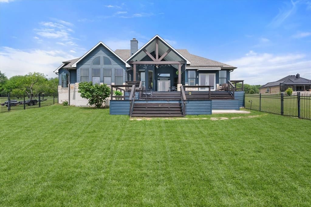 Set on a premier stretch of open water on Richland Chambers Lake, this refined lakefront home in Francisco Bay delivers a seamless blend of craftsmanship, comfort, and elevated lake living. On approximately 1.63 acres with an impressive 186 feet of shoreline, the property captures expansive water views while offering privacy, space, and effortless access to the lake.Designed in a modern farmhouse Craftsman style, the layout is approximately 2,850 square feet with 4 bedrooms and 3 full baths, thoughtfully arranged for both everyday life and guests. Vaulted ceilings, rich wood and stone finishes, and abundant natural light create a warm yet upscale vibe. The open-concept living areas flow easily into a well-appointed kitchen featuring granite countertops, double ovens, and generous cabinetry—ideal for gathering after a day on the water.The primary suite is a private retreat with an ensuite bath, dual vanities, and walk-in closet, while additional bedrooms offer flexibility for guests with ensuite and Jack-and-Jill configurations. Every space is designed with comfort and function in mind, complete with decorative lighting, and quality finishes throughout.Outdoors, the experience continues with a covered rear porch and deck overlooking the lake—perfect for morning coffee or evening entertaining. The boathouse, covered dock, and personal watercraft lift provide immediate access to open water, making boating, fishing, and lake days part of your everyday routine. A mosquito mist system, sprinkler system, and landscaped grounds further enhance the usability of the property year-round.Additional highlights include a 3-car oversized garage, circular driveway, and access to gated community amenities including a pool, boat ramp, and fishing areas.This is a rare opportunity to own a thoughtfully designed waterfront home that offers both refined living and the freedom of a quieter, lake-centered lifestyle—without sacrificing quality, space, or convenience.